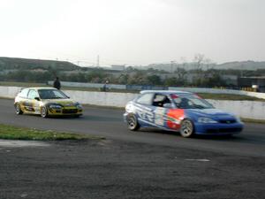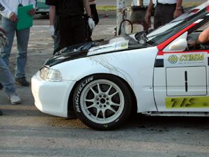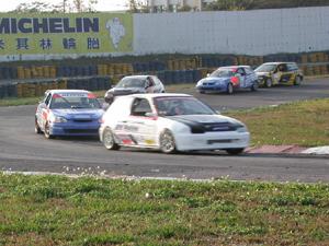 ![]() 比賽繼續進行,領先的是13號SRR車隊黃祥益,而緊接在後的是37號同和車隊趙敦雄,兩部車競爭的相當激烈。而後面跟的是128號SRR車隊簡俊祥,而以硬皮鯊參賽的3號格立特車隊陳裕益,因為引擎問題在耶穌彎尾停擺退賽,相當可惜。