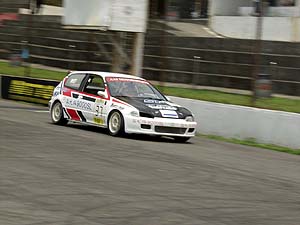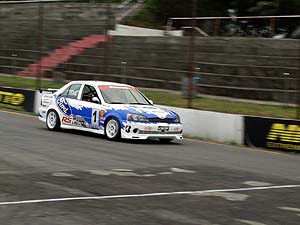 ![]() 可惜出賽前引擎有些許吃機油現象,為求動力可靠性臨時決定更換原廠未強化之引擎參賽,配上美規MAZDA 323原廠疏齒比變速箱,最慘的是沒有LSD!測時賽以1分05秒176拿下第四,這樣的動力實在很難和其它CV3較勁,全靠底子硬的關係贏在彎道和技術。決賽中,起跑就差點被後車超越,但是抓到訣竅後速度反而比測時賽更快,總算超越前車拿下第三。在諸多不利因素下能有此成績,相信在動力提升後有望打破TIS最佳單圈紀錄。