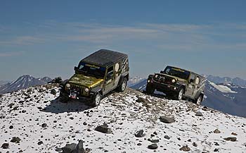 雖然有無數越野車輛嘗試征服Ojos del Salado火山,但是只有「無所不至、無所不能」的Jeep,才有攻頂的能耐。Ojos del Salado火山是西半球第二高的高山(海拔6,892公尺),現在更成為世界上海拔最高的停車場,不過當然是Jeep專屬的停車場。在今年三月中,兩部Jeep Wrangler Unlimited載著由Mattias Jeschke領軍的一隊人馬,從智利安地斯山脈出發,歷經五天時間,克服萬難到達火山口。
