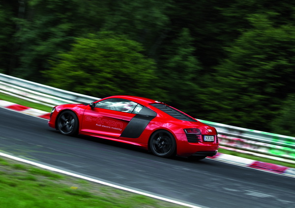 ![]() 在賽車手Markus Winkelhock的駕駛下,R8 e-tron成功地創下8分09.099秒的市售電動車Nurburgring最快單圈記錄,讓R8車系在Nurburgring與利曼24小時耐久賽事的勝利之外,又多添一光輝記錄。順代一提,搭載一般內燃機引擎在Nurburgring創下最快單圈記錄的市售車,是搭載AUDI七百匹馬力V8汽油引擎的Gumpert Apollo Sport超級跑車。