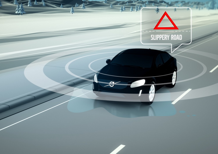 當VOLVO的測試車偵測到路面上有濕滑薄冰時,會透過行動電話網路傳送到VOLVO汽車的數據資料庫中,而經過那一帶區域附近的車輛則會立刻收到提醒訊息,讓駕駛者能夠及時避開危險。警告燈號會設計在儀錶板上讓駕駛者能立即辨識,且會依照當時車速、路面實際狀況等條件來判斷嚴重程度給予不同程度的警示。