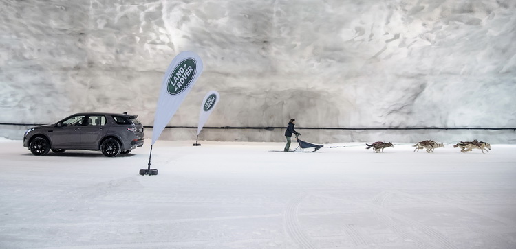 這座路線形狀波浪曲折的隧道,是位在地下35公尺處,因此即使在夏天也是保持在攝氏負2度的低溫,遍布於地上的積雪深度則達20mm。在這裡,Discovery Sport就要與Laura的狗拉雪橇隊來一場馬力對狗力的競賽,一方面作為雪橇隊的訓練,另一方面也正好來測試Discovery Sport四驅系統與全地形反應系統的能耐。
