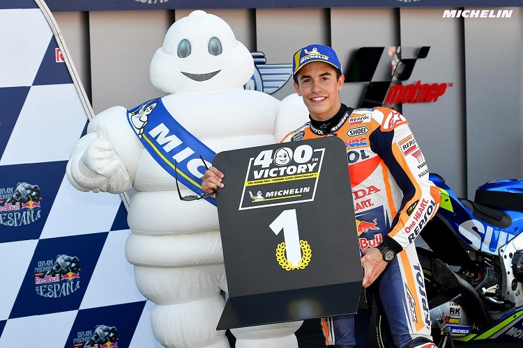 MICHELIN在MotoGP西班牙站Marc Marquez拿下冠軍後,這間源自法國歷史悠久的輪胎商也光榮拿下在摩托車賽最高殿堂MotoGP的第400場勝利。