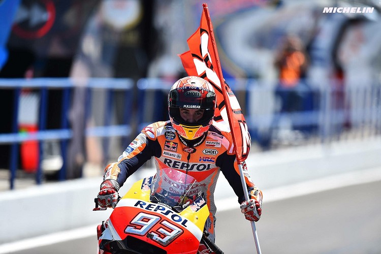 MICHELIN在開放輪胎時代與無數家輪胎廠商在最高級別競爭,直到2008年的最終站Catalunya,由Dani Pedrosa拿下勝利。MICHELIN的連勝在那之後被迫被賽會連續7年的統一輪胎規定打斷。在1973至2008年這段期間,MICHELIN在500cc/GP級距中取得驚人的73%勝率的好成績,幫助Honda, Yamaha, Suzuki, Cagiva拿下勝利,也幫助Sanvenero車手Michel Frutschi在1982年法國站拿下僅此一次的冠軍。MICHELIN的連勝在2016年回歸MotoGP成為官方指定用胎後繼續。自此之後拿下了連續40場勝利,包含Marquez在週日所取得的勝利。同時,Ducati也成為了使用MICHELIN輪胎贏得勝利的車廠之一。MICHELIN與MotoGP的合約將至少延續至2023年,因此有極高的可能性這間法國輪胎廠很快就將迎接第500次的勝利。