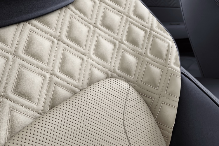 製作一台車份的內裝需要九張北歐公牛皮,而將它們全部縫製起來則需要耗費約2.8公里,由於皮革在縫製過程中會縮水12%左右,所以在裁切每張皮革時都得事先將其計算考量,才能確保包覆在內裝上時是完全服貼完整。