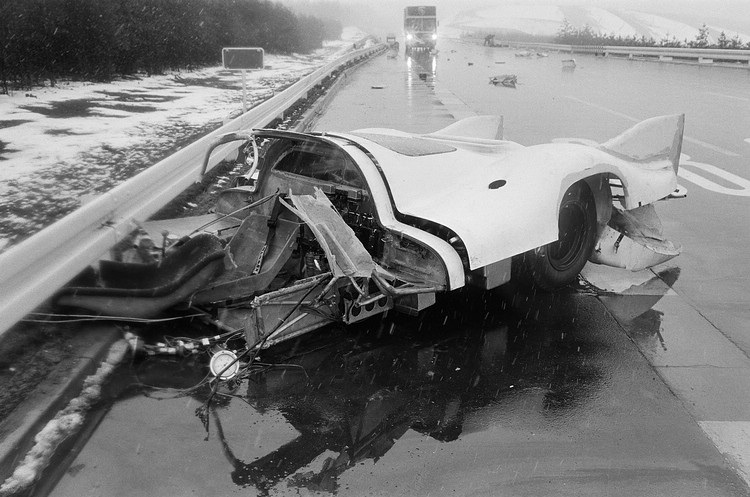 ![]() ▲1969年8月25日策爾特韋格(Zeltweg)舉辦的首屆奧地利1,000公里拉力賽。從左至右為Paul Hawkins、Jo Siffert(駕駛908 KH奪冠)、Hans Herrmann、Kurt Ahrens(獲亞軍)。當年最後一場比賽917奪得首勝,完美總結了整賽季中的各項測試和研發工作。對於Ferdinand Piech與917專案團隊而言,Kurt Ahrens與Joseph Siffert攜手得勝的紀錄意義非凡,Porsche 917在奧地利紅牛賽道(Osterreichring circuit)以實力證明無與倫比的性能,一雪利曼賽道未完賽的前恥。1969年10月Ahrens受邀參與在策爾特韋格(Zeltweg)的重要測試,催生後續賽季中稱霸賽道的短尾917賽車。 ![]() ▲1970年5月31日紐柏林1,000公里賽事頒獎台上,Kurt Ahrens(左2)與Vic Elford(右2)合作駕駛Porsche 908/03奪冠。![]() ▲Kurt Ahrens於1970年4月駕駛917-006於Ehra-Lessien測試賽道遭遇車禍。