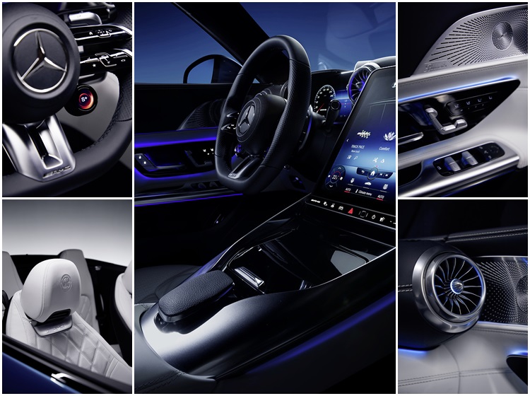 » 可電動調整角度的觸控式中控台:全新 Mercedes-AMG SL 搭載直式 11.9 吋多媒體觸控中控台,以金屬邊框點綴,無縫接合航太技術最符合空氣力學的挖孔設計 NACA 造型標誌,承續 AMG GT 及 GT 4-door Coupé 指標性內裝元素。同時,為避免駕駛時陽光反射影響行車安全,中控螢幕更可電動調整角度,以符合每位駕駛者不同的最佳視角,減少螢幕眩光問題,更增添全新 Mercedes-AMG SL 開篷樂趣及行車安全。 » 打造舒適安全兼具運動風格的頭枕式座椅設計:為了滿足消費者對於舒適度和具運動風格的要求,此次全新 Mercedes-AMG SL 座椅以運動風格作為設計主軸,透過獨特材質,讓座椅頭枕更加輕巧、更符合精密計算的人體工學設計,打造出高科技、性能及奢華的完美比例,滿足車主對舒適性的高度期待。 » 新一代 MBUX 系統直覺式操作:全新一代 MBUX 系統為消費者帶來更直覺且智能的操作,並依照喜好進行個人化的設定,打造出獨一無二的專屬氛圍,完美呈現熱血性能跑格。