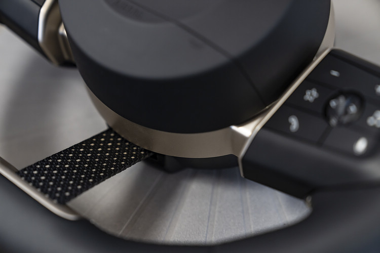 作為選配的方向盤,則會多出一處靈感取自於織品設計的創新點綴飾面,並在握環內外加入霧銀飾板增添特殊觸感。