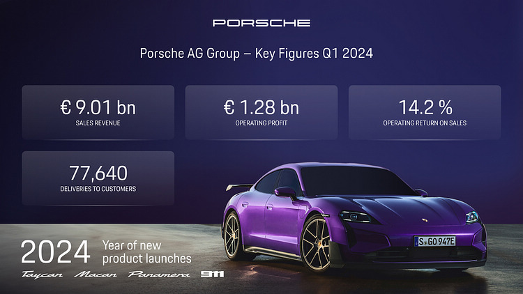 保時捷集團公開2024第一季營業報表,與去年同期相比,銷售收入和營業利潤都銳減了1至3成,營業銷售報酬率也從18.2%跌落至14.2%,交車數量則減少了3.9%。儘管如此,保時捷仍以旺盛的企圖與前瞻的視野開啓啟充滿挑戰的 2024 財務年度,因為今年他們將對旗下六款車型中的四款進行大幅更新。