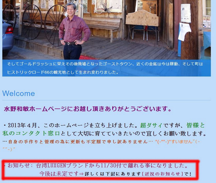 在日本日產汽車工作超過四十年,開發過包括Bluebird、Sunny、Primera、R32 Skyline、「東瀛戰神」GT-R在內多款日產車款,素來被稱為「GT-R之父」,也是現在裕隆集團旗下華創車電副社長水野和敏最近突然在個人網站上宣布將於11月底離開LUXGEN的消息。