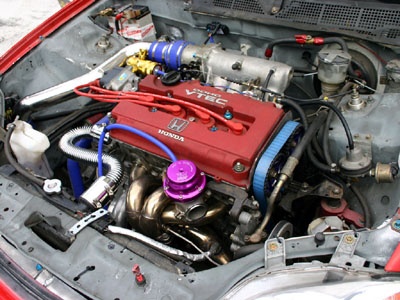 動力升級是這輛車的改裝重點,這輛車使用的引擎是B18C並進行擴缸手術,銑後安裝Darton Mid B22B專用擴缸缸套,將排氣量一舉從1800cc擴大到2200cc。同時也安裝了2.2升專用的JE 85mm鍛造活塞、Eagle輕量化連桿和曲軸,為了安裝渦輪增壓系統,也找來厚達1.2mm的汽缸床墊片,將壓縮比壓低到7.9,整具引擎整理得相當乾淨。