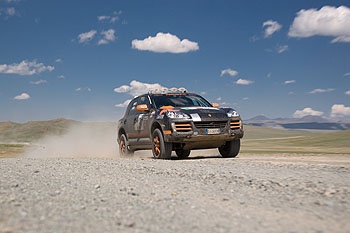 ![]() 不論從外觀設計、塗裝與內在機械結構來觀察這輛Porsche Cayenne S Transsyberia,我們仍然可以清楚地知道,這是一輛近乎完全原廠輸出的保時捷Cayenne車型,以往保時捷Cayenne車系在on-road性能上一直是所有SUV的翹楚標竿,而在越野性能上以往我們僅能在原廠試駕活動與保時捷車主駕駛訓練營(Porsche World Roadshow)中獲得驗證,而此次Porsche Cayenne S Transsyberia橫跨了長達7,100公里的西伯利亞荒漠與蒙古戈壁沙漠,更驗證了其長程越野能力與優異耐用性,包括所有參賽的26輛Porsche Cayenne S Transsyberia沒有任何一輛車因為機械故障而退賽。