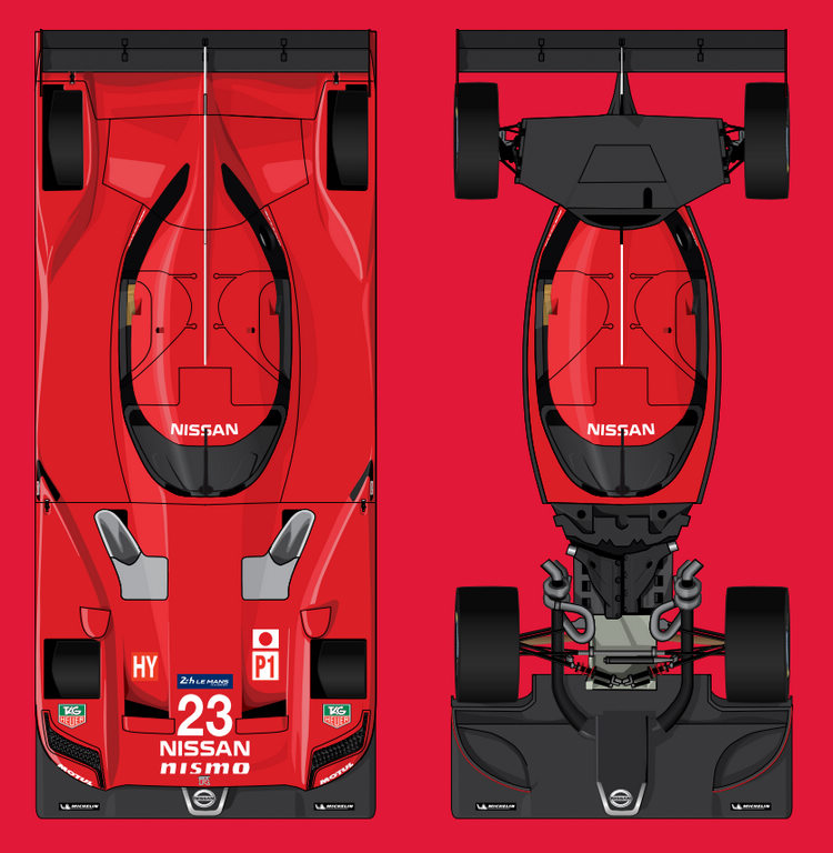 NISSAN GT-R LM Nismo的車身長度為4,645 mm,為右駕版本,為了符合FIA LM P1 Class的WEC規格,最輕重量會高於880kg。動力系統方面,採用的是3.0升v6雙渦輪增壓汽油引擎,結合動能回收系統所組成的油電複合系統,搭配五速序列式變速箱,推估可輸出最大1200hp馬力以上。