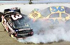 ![]() 事件發生在比賽最後一圈,代表Richard Childress Racing的Dale Earnhardt,駕駛著Chevrolet房車和Sterling Marlin的Dodge賽車、Ken Schrader的Pontiac賽車形成拉鋸,直到最後三部車同時搶進彎道,Earnhardt與Marlin距離過近兩車擦撞,之後只見Earnhardt的車輛,彈射撞擊場邊的圍牆,隨後並撞進Marlin賽車的乘客座並波及Schrader的賽車,事故現場滿目瘡痍、怵目驚心,大會也立刻揮動紅旗並派出救護小組處理。這起嚴重意外發生後,由其子同時也是NASCAR新星的Dale Jr;和妻子Teresa陪同送往醫院,當Halifax醫務中心的醫師Steve Bohannon,正式宣布Earnhardt的死訊後,不論是NASCAR主辦單位以及其家人,頓時陷入一片哀悽氣氛中。