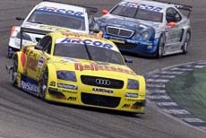 ![]() 首先他在Qualifying Race九圈的比賽中勝出,從起跑一直到方格旗揮出都保持著領先;而在他後面的是Audi陣營的Laurent Aiello;緊接的是Mercedes的Bernd Schneider、Uwe Alzen以及Peter Dumbreck;駕駛另一部TT-R的Mattias Ekstrom則取得了第六;Opel方面再次全軍覆沒,沒有車手擠進前十位,去年的盛況已不復見。 Fassler持續在28圈的比賽中保住領先地位,不過在第七圈時發生小小失誤滑出了賽道,給了Schneider機會超越了他,不過還好Fassler在11圈時進Pit補給,接著並趕了些路;而Schneider在13圈時才進Pit,重回賽道時剛好就在Fassler的後方,雖然Schneider持續給予Fassler強大的壓力,卻一直苦無機會超越,甚至在倒數第三個彎稍稍滑出賽道,最後讓Fassler拿下了冠軍,自己則屈居亞軍。