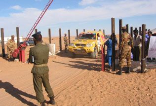 在第八天西撒哈拉到茅利塔尼亞的一般路段(RS)上,一輛葡萄牙籍的後援車輛才偏離了行進路線五公尺,旁邊的士兵就開始驚叫並面露驚惶的表情,揮手示意趕緊倒車,不過這時候已經來不及了,一聲轟然巨響之後,這位後援人員的左腿當場被地雷炸掉!事發地點靠近摩洛哥軍隊在與西撒哈拉邊界築的「沙牆」,這個「沙牆」用意是要阻擋爭取獨立的西撒哈獨立陣線組織的進擊。這一地區地雷很多,是出了名的危險地帶,據說地雷數量有數萬枚之多!而這一切,翻遍賽會發給的「路書」絕對找不到!