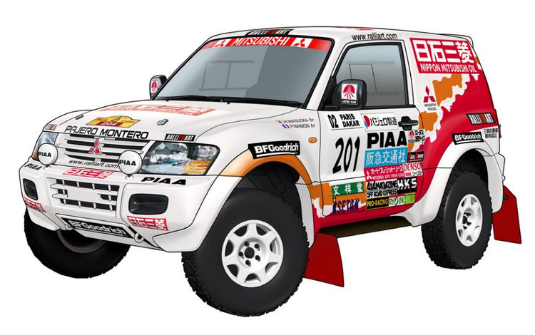 即使與其他專為競技而生的純種越野車種相比較,Pajero在達卡上的表現仍然不輸人。FIA在1987年起規定拉力賽用車的規格,A組必須是年產量達到5000輛,車內必須有標準四座設計,馬力必須小於300匹馬力。用來參賽的Pajero很明顯是符合此一規定,雖然部分結構必須特別為了比賽而重新設計與補強,不過基本結構仍是維持和市售車相去不遠。