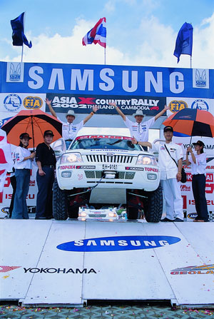 號稱亞洲最艱難的2002 Asia 4×4 Rally賽已於8月8日比賽完畢,此次共有5個國家參賽,分別是日本、韓國、馬來西亞、泰國與台灣等33部賽車參與競爭,為期6天的賽程共分為9個賽段,起點泰國曼谷,終點柬浦寨的吳哥窟全長約2500公里,賽道著重在泰國中部,因此以丘陵與叢林地形為主,充滿紅土、爛泥、岩石、坑洞、草叢、樹林等艱困的路面,再加上正逢泰國雨季的開始,就比賽環境而言更是充滿變數。完成全部賽程對所有參賽的隊伍,在車子的性能、車手專業度及後勤維修補給上,無疑是一項最嚴苛的挑戰。比賽結果,由佔盡地利之便的泰國選手包辦總成績一、二名,而代表台灣參賽的Ford Escape車隊,首次參加比賽即拿下Proto Type無限改裝原型車組的冠、亞軍,為台灣國產車界寫下具歷史性光榮的一刻。
