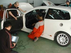 ![]() ▲華龍賽車隊在為EP3 作賽前測試的情形據了解,為了準備今年的賽事,華龍車隊改裝了兩台HONDA Civic EP3參賽。最特別的地方是這兩台新賽車是完全由車隊自行改裝,甚至行車電腦的程式都是自行編寫。而為了方便和準確地編寫程式和調校引擎來達到最好的性能表現,車隊更添購了一座電腦控制的功率測試機台來幫助調校工作,令華龍成為了中國境內極少數擁有自己的研發設備和能力的專業賽車隊。