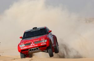 ![]() 所謂的超級生產組(SUPER PRODUCTION Class)規定賽車寬度不得大於兩公尺,輪胎的避震行程不得多於25公分,而最新推出的賽車,已針對過去的參賽心得做了諸多改變,最明顯的地方就是Pajero Evo引擎從以往的3.5 V6引擎升級為4.0 V6(Pajero仍採3.5引擎),馬力則為270 PS/5500rpm(馬力比3.5引擎小降10 PS)。雖然參賽地點是在歐非大陸,但生產及研發這輛廠車的地點是在日本,只不過過程中曾前往摩洛哥進行測試,並參與上個月的阿拉伯聯合大公國一場沙漠拉力賽,這具4.0 V6引擎雖然說是用在Pajero Evo上,據說也會配備於三菱葡萄牙籍車手Carlos Sousa的L200 Strakar車上面。