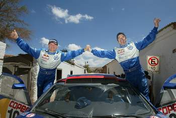 Volkswagen恰如其分的展開了世界盃越野拉力錦標賽(Cross Country Rally World Cup)!在阿根廷與智利舉行的Por las Pampas越野拉力賽事中,Volkswagen原廠賽車手布諾•賽比(Bruno Saby)以及副駕駛米謝•派倫(Michel Perin)歡慶由Race-Touareg所奪得的第一場勝利。他的隊友玉塔•克蕾絲萌(Jutta Kleinschmidt)和副駕駛法柏利亞•龐斯(Fabrizia Pons)則以總積分第三名完成賽事。