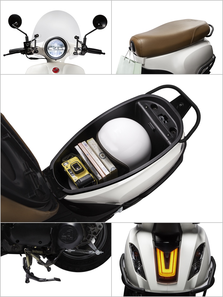 ![]() 全新Dory 125 ABS採用全新環保高效能七期引擎,平均油耗 52.2km/L,並配備高階天使白光LED造型大燈,照明亮度加倍,結合辨識度超高的LED雙軌道式U型尾燈與方向燈,大幅提升夜間騎乘安全性。