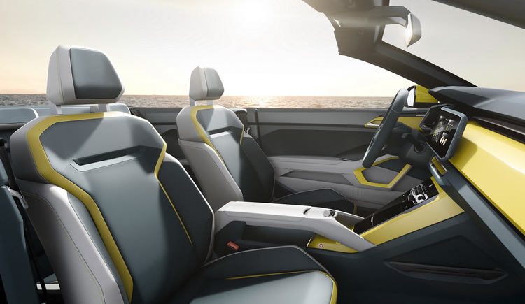![]() T-Cross Breeze的車身尺碼只有差不多Polo的程度,車長:4133mm、車寬:1798mm、車高:1563mm、軸距:2565mm、車身重量:1250kg,但不僅以SUV型態呈現,而且還是部上空的敞篷車,再加上比較高的座椅位置,讓車內成員能夠擁有很棒的乘坐視野與開放感。相對較小的車身而言,T-Cross Breeze配上了19吋的大徑鋁圈,在視覺上也更具氣勢:行李廂容量為300公升。