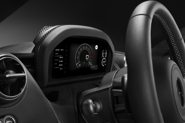 而中控台上的八吋觸控螢幕則提供了包括廣播、影音、導航等系統的絕佳整合操控,並且可同時執行多項功能;透過一些快捷鍵的設定,駕駛者也可以更快地進入某項功能完成操作。控台上的各類控制旋鈕都使以鋁質與皮革透過精心的加工製成,展現出McLAREN一貫的精巧造車工藝與對豪華細緻的追求。而在照明、視野、與車內空間來說,也會是同級超跑中最具有駕駛者親和力的。