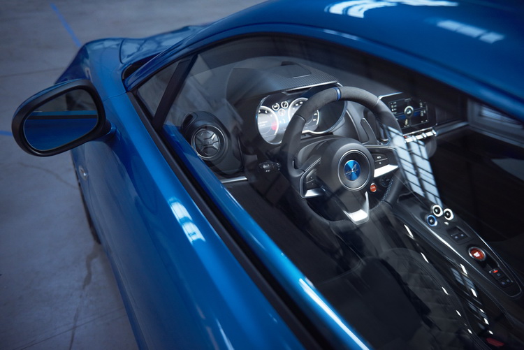 A110的底盤與車身都是以鋁合金材質透過黏合、鉚釘與焊接組裝打造,創造出輕量而高剛性的車體結構。超輕量的車身只有1080公斤,車長:4178mm、車寬:1798mm、車高:1252mm的短小精悍車身尺碼、前:44%/後:56%的理想車身配重與低重心化車體賦予它高度的操控靈活性,面對蜿蜒多彎的山道路況更可說是它大展身手的舞台。車身重量大幅集中於車身中央也是值得注意之處,油箱配置於前軸後方而引擎配置於後軸前方,讓駕駛在開車時更有人車一體的感覺。