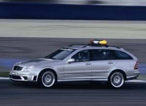C55 AMG Estate這輛旅行車則是提供給F1首席醫療專員Sid Watkins使用,在特殊時刻(起跑及重大事故時)就必須出動,準備在第一時間搶救傷患,看似柔細的工作內容,卻必須同樣有強勁的性能才能爭取在寶貴的每一秒、第一時間內到達現場。它搭載的動力為5.5升V8引擎,最大馬力367 hp,是專為一級方程式錦標賽比賽場合使用而重新配置的。