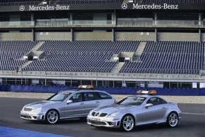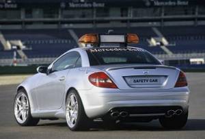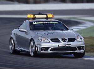 從1996年M-BENZ取得FIA合約開始提供Safety Car開始,已經有六代車上場擔任這個重責大任了。第一輛是C 36 AMG(1996)、第二代是CLK 55 AMG(1997)、第三代是CL 55 AMG(2000)、第四代為SL 55 AMG(2001)、第五代為新CLK 55 AMG(2003),然後才是今年的SLK 55 AMG。