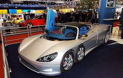 提到六輪跑車,或許不少人會先聯想到F1賽車史上首部六輪賽車Tyrell P34 。不過,這部C6W結合多項最新科技,稱得上是21世紀最新的超級六輪GT跑車。COVINI是創立於1978年的義大利技術開發公司,C6W是由該公司與建築機械製造商PMI所共同合作開發。其車身尺碼為車長:4180mm、車寬:1990mm、車高:1080mm,車重1150公斤。C6W前四(15吋)、後二輪的配置,對於前面投影面積的縮小以降低風阻,以及增加輪胎接地面積、提升過彎穩定性都有幫助。採後輪驅動配置的C6w搭載4.2升V8引擎,搭配六速手排變速箱,極速可達300km/h,未來是否付諸量產目前尚未決定。