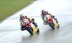 到了第3圈時,雨勢變大,車手之間距離也逐漸加大,此時宇川徹卻奮勇直上,一舉超越了在前方的中野與O.Jacque,成為領先車手,隨