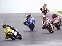 比賽在起跑之後,排位在第三排的Laconi迅速衝上前將領先位置取下,讓原本排位在第一排的Barros、K.Roberts、與V.Rossi小小吃鱉只能緊跟在後,而McCoy與YAMAHA的Biaggi、Checa等人則起跑太慢,排位大幅落後至15名之外。