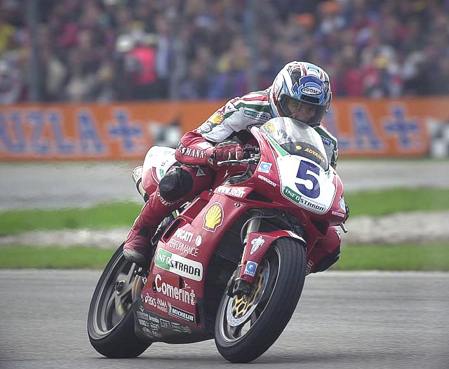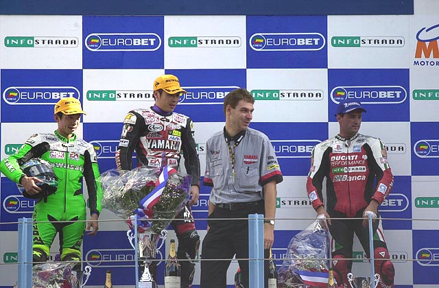 Worldsuperbike第六站在荷蘭的比賽,遇到了一場天雨,因此在起跑之後各個車手也顯得格外謹慎。HONDA的C.Edwards在第二圈之後開始取得領先,19號車手Borja則緊隨其後,不過卻一直難以給予C.Edwards太大的威脅。至於後方集團則包括了Chili、芳賀紀行、柳川明、A.Slight與Corser等,而Bayliss則很不幸地在第一圈就發生轉倒,含恨退出比賽。