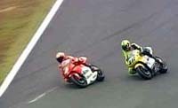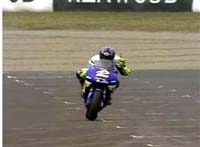 為了緊迫V.Rossi,M.Biaggi在一個急右彎以極大的側傾角度過彎,這使他幾乎發生Highside以外,雖然後來有驚無險的通過,不過卻也使他與V.Rossi的距離又多拉開了幾個車身,可說是得不償失。