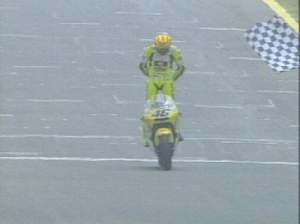 就開始不斷急起向前,到第9圈時追到了第9位,到第13圈時更是已經爬到了第五位,與一直守在第二集團的中野真矢開始展開纏鬥;第十五圈時,一直守在第3位的Capirossi發生失誤而衝出跑道,中野與Criville兩人遞升成為第3、4位,緊接著在下一圈,