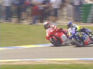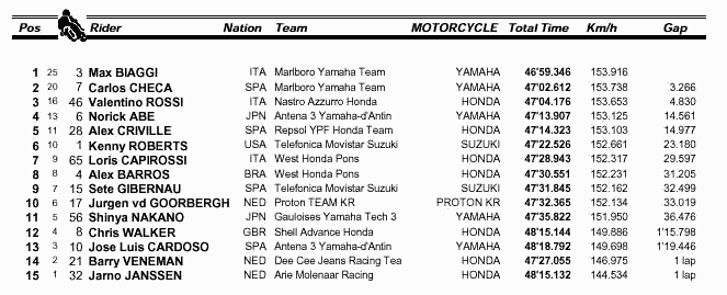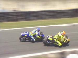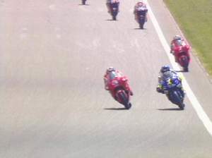 V.Rossi已經追上了K.Roberts並予已超越,搶下了第3的位置,一路過關斬將,氣勢一點也不輸給領先的義大利同胞M.Biaggi。