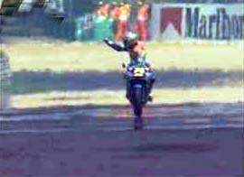 整個身體被拋到車身右側,不過他卻死命地穩住車身至停止,然後才回身上車繼續比賽,留下一個相當難得的鏡頭,同時也留給從後方追過來的R.Rolfo與J.McWilliams一場不小的虛驚。J.McWilliam雖然沒有被這一下的意外給牽連而再度退賽,不過仍然無法趕過前方的R.Rolfo,只能守在第五位置。