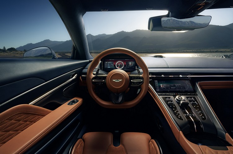 DB12全新內裝配備新一代資訊娛樂系統與一系列先進連網功能,駕駛導向座艙除強調奢華工藝與頂級材質,偏高的中控台也力求駕駛與乘客擁有時尚奢華的沈浸感。