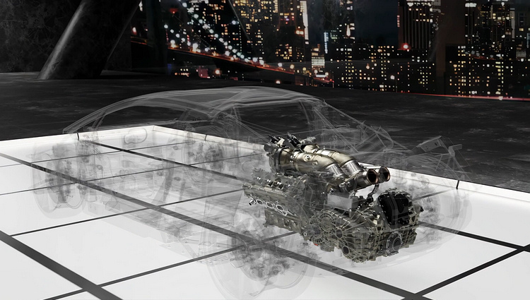 位在兩排汽缸之間則設置350bar中央直接噴射供油系統,並且採用和高性能摩托車相同的側邊搖臂式汽門機構;同時,兩組渦輪機置於汽缸夾角之間,也能達到更好的熱能和流體管理效率;至於乾式油底殼設計,則是確保極端離心力駕控下仍能提供最佳潤滑。