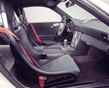 全新911 GT3的內裝陳設主要是以現行911 Carrera車型為基礎,但是大量導入Alcantara麂皮材質,增添絕佳觸感享受的同時,也顯著提昇車室內的賽車競速氣息,麂皮材質的好處還包括優異的抓握感、可清洗性及易於保養的特性,因此舉凡車室內經常碰觸、抓握的部件,都可發現此種材質的鋪陳,包括方向盤緣、排檔頭、手煞車拉柄,以及標準跑車椅椅面的中央部位。