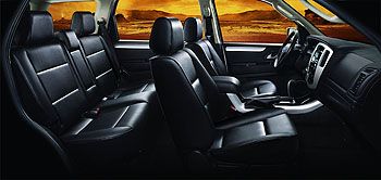 ![]() MAZDA Tribute 黑意志限定版讓人過目不忘的是充滿張力與肌力的流線外觀;而在鍍鉻五點式水箱護罩上的MAZDA廠徽更是帶出Tribute的氣宇軒昂;前保險桿上新增的整合式大型防撞桿與底盤護板,則讓整部車散發出一股躍躍欲試、捨我其誰的越野風格。大型反射式晶鑽頭燈與鑽石燈面時尚尾燈,搭配後視鏡的鑽帶指示燈著實令人眼睛為之一亮。而雙色車身與直列式車頂架的加持,再配備上16吋鋁合金輪圈與不鏽鋼排氣尾管,讓車身外觀運動氣息更加強烈。Tribute 黑意志限定版車內所搭配的高質感霧銀環艙內飾組,以及全新之黑色系內裝,更是讓座艙內的質感再升一級,直逼進口LSUV。置身其中,優越的駕馭感油然而生,開創了不流於俗的SUV新風格。