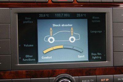 而當高速行駛、車速超過140km/h時Phaeton會自動降低懸吊系統,降低風阻。不但減少油耗也讓車身在高速行駛時更行穩定。此外Phaeton的4MOTION恒時全輪驅動能夠隨著路面與天候的狀況分配每個車輪的動力比例。輪胎也升級到18吋,但在高速切入彎角時後輪還是有點為為的打滑,不過在電子循跡系統的介入之下車輛立即被拉到正確的位置上。