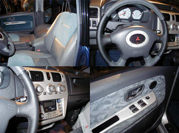 ![]() ▲New Freeca的外觀在這次的改款中並沒有重大的變革,僅新增了幾個以往沒有的車色。New Freeca在這次的改款中,其外觀方面並沒有做任何改變,僅有彩繪貼紙的造型有所更動,並且新增了以往沒有的車色。然而,關於車室內配備的變化,其項目之多令人眼花撩亂,主要的幾個改變點包括下列幾項。新車款採用了灰色皮革/灰藍色不織布兩種材料組成的附合材料雙彩皮椅,附有駕駛座椅面高低、椅背傾斜度與腰靠部份的電動調整叫lash;能,包括中控台與車門板等部份採用了新曲面印刷紋路、無論紋路與質感都是第一次見到的銀白色類金屬飾板裝飾。四輻式方向盤是全新設計的造型,中央可以見到用仿鈦合金/碳纖維材質裝飾的MITSUBISHI廠徽。