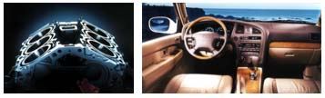 ![]() QX4這次改款的重點是在於動力系統的改變,不過在外觀與內裝上,仍然做了不少變更,以營造出全新的SUV氣象。在外觀方面,新QX4換上了新型的橫檁式水箱護罩,同時將霧燈也與方向燈一體成型,塑造出較為圓潤簡潔的感覺。不過最值得注意的,則莫過於採用了HID氣體放電式氙元素頭燈(新改款的Q45也同樣採用)。