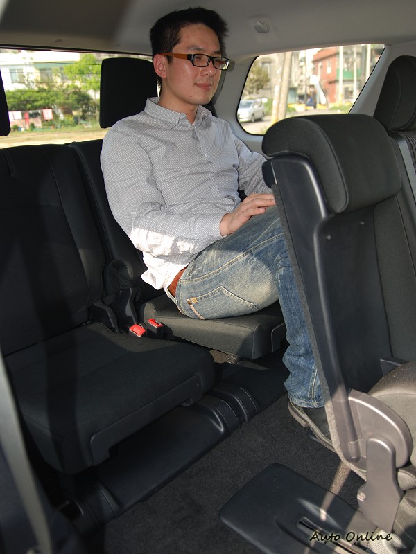想要進出4RUNNER的第三排座椅並不困難,只消轉動第二排座椅側邊的把手,即可讓第二排座椅椅墊前滑椅背前傾,形成一進出第三排座椅的通道,在後車門門檻處,4RUNNER還設有一墊高的踏腳處,用以便利進出第三排座椅的踩踏。若要移出4RUNNER的第三排座椅,只要拉動藏在第二排座椅下的拉把,即可讓第二排座椅前傾、前滑,進出真的不困難。