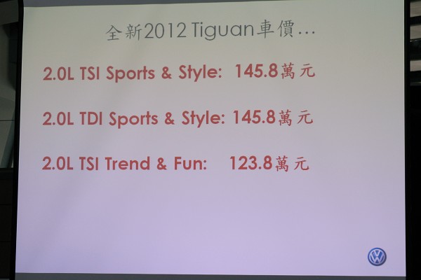 ![]() 全車系標配4MOTION 四輪驅動系統的新改款Tiguan定下年銷售4000輛的目標,這4000輛的數字同時也是在缺車潮中4年來Tiguan交車的總和,因此這顯示未來新改款Tiguan的交車量,將逐漸趨於正常,不然這數字將難以達成。VW Tiguan改款新車已於8月中旬展開預售,並在短短2週之內接單超過200張,顯示國內消費者對Tiguan的喜愛與青睞!為了回饋車迷,太古標達汽車在9月5日正式上市,並以不漲價的優惠方式搶進國內中型休旅車市場,各車型售價分別為:2.0 TSI Trend & Fun/123.8萬、 2.0 TSI Sport & Style/145.8萬、2.0 TDI Sport & Style 145.8萬。