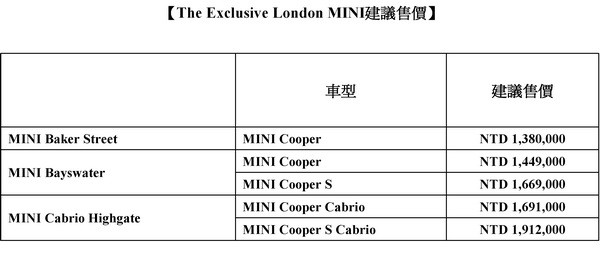 強調在地精神 THE EXCLUSIVE LONDON MINI特仕版上市