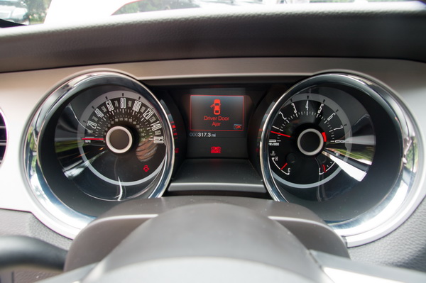 內裝在設計上仍然保持復古風,中控台、排檔座、前方控台等線條都偏方正硬調,不過配備上卻完全跟上最新的科技潮流。搭載4.2吋彩色液晶中央螢幕顯示多項行車資訊,或是與FORD自豪的SYNC多媒體通訊影音娛樂系統相整合作為影音通訊的顯示介面,並透過方向盤上的按鍵即可操作其中功能。 ![]() ▲方正剛硬的內裝布局頗有復古風情